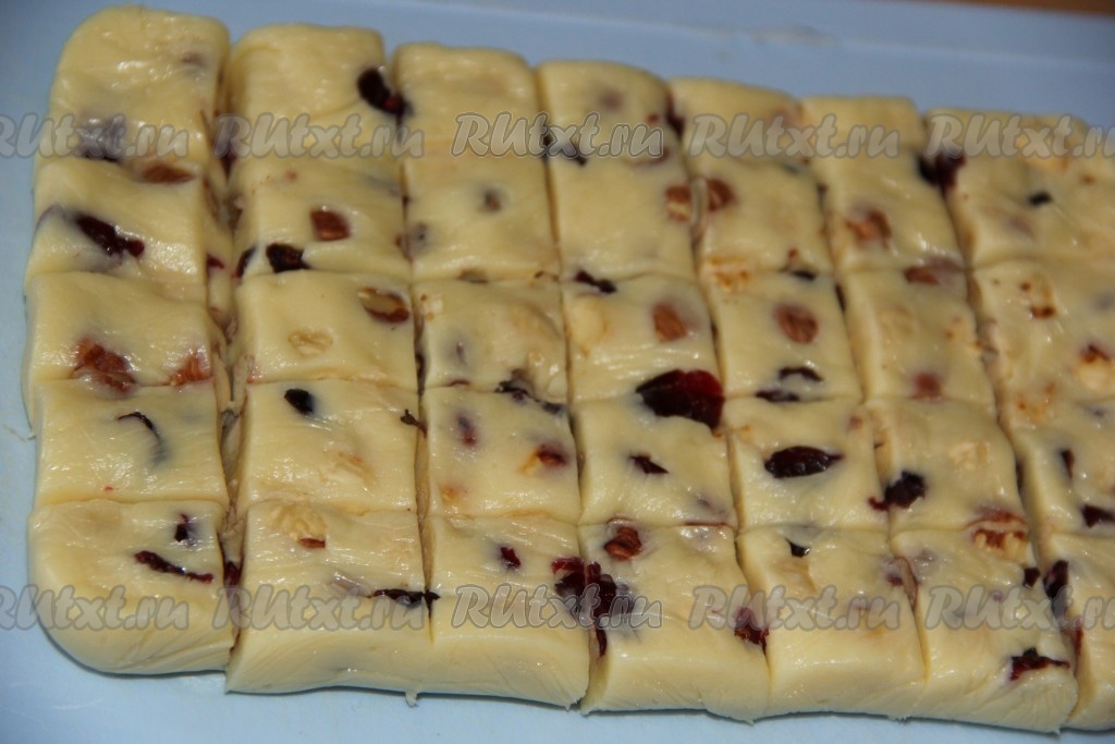 Нарезать массу на квадратики и можно подавать к столу.