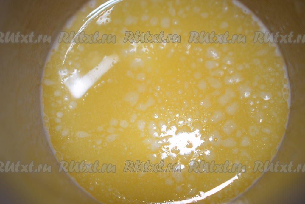 Далее растопим сливочное масло, остудим. В тёплое масло добавим щепотку соли и яйцо, перемешаем и отправим к тесту. Вначале ложкой, а затем руками замешиваем тесто.