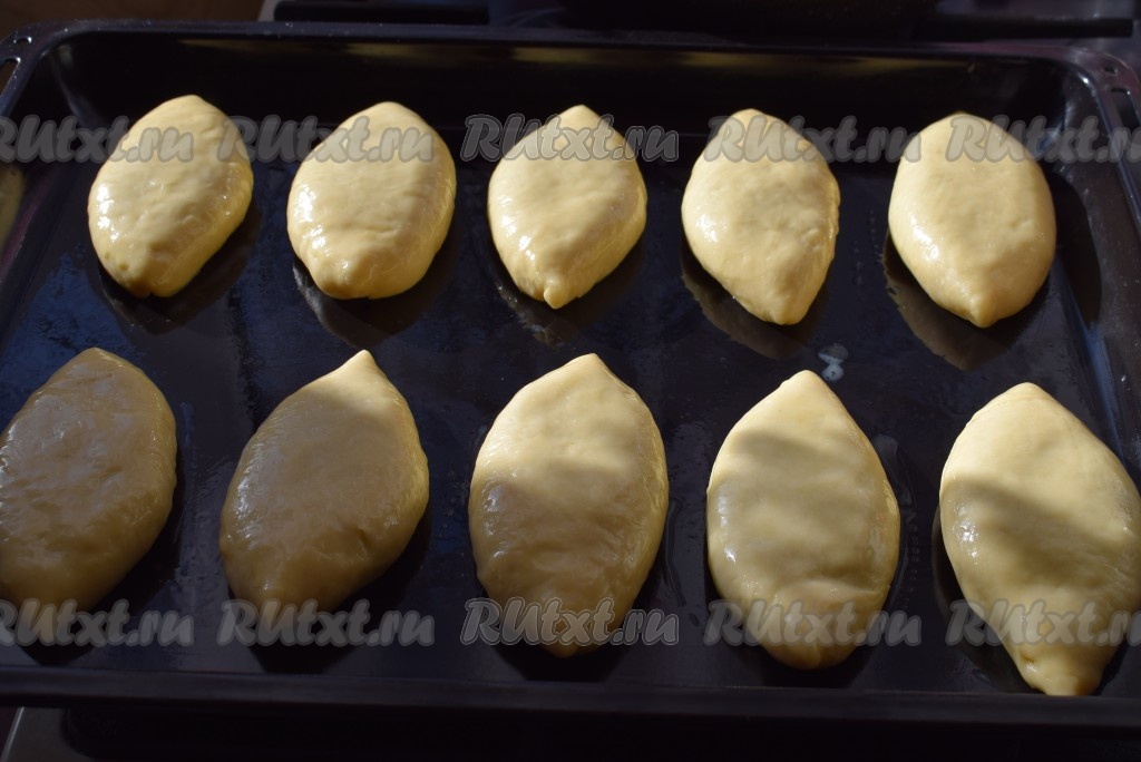 Противень смазываем растительным маслом и выкладываем получившиеся пирожки швом вниз.