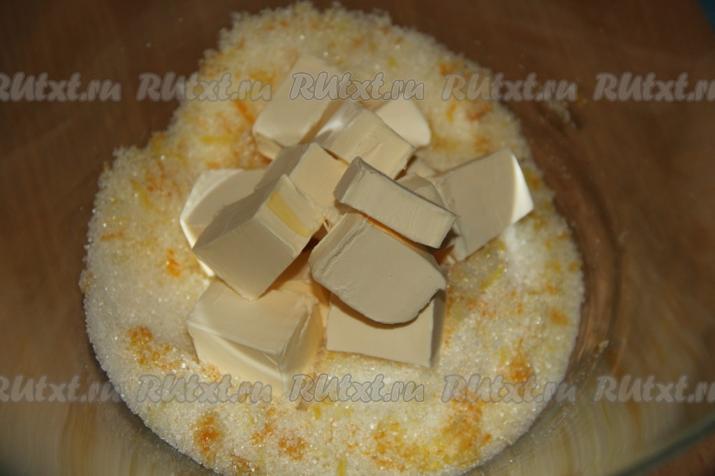 Затем добавить кусочки мягкого сливочного масла и перетереть его с сахаром.