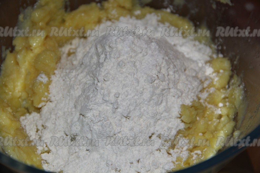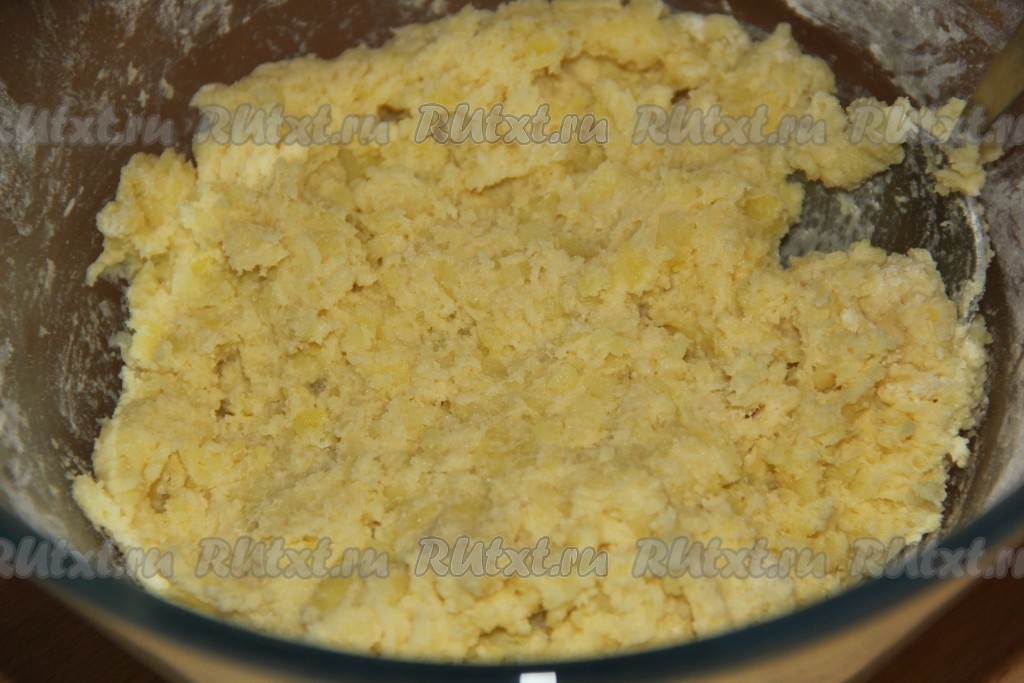 Завернуть начинку в картофельное тесто, формируя круглые пирожки.