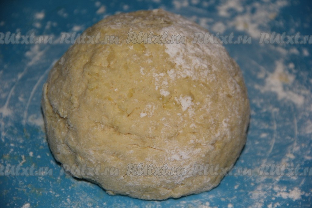 Переложить тесто на силиконовый коврик и, припыливая мукой, довести тесто до нужной консистенции - картофельное тесто должно стать мягким и не липким. Накрыть тесто полотенцем и дать "отдохнуть" минут 15.