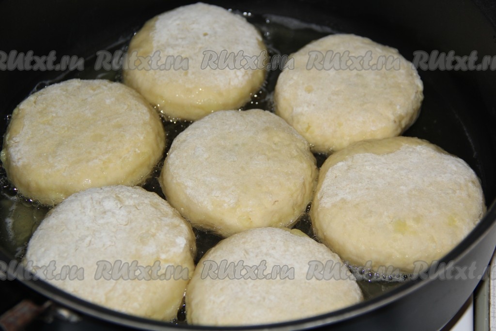 Обжарить пирожки с двух сторон до золотистого цвета на среднем огне.