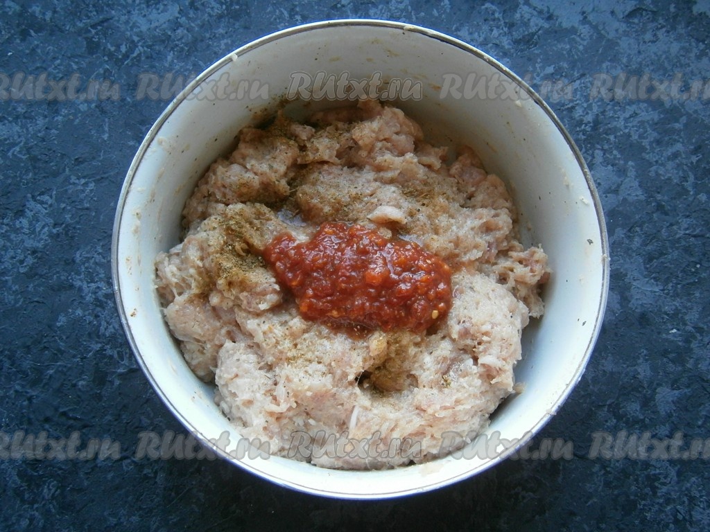 Добавить соль, перец, приправу, сухую аджику.