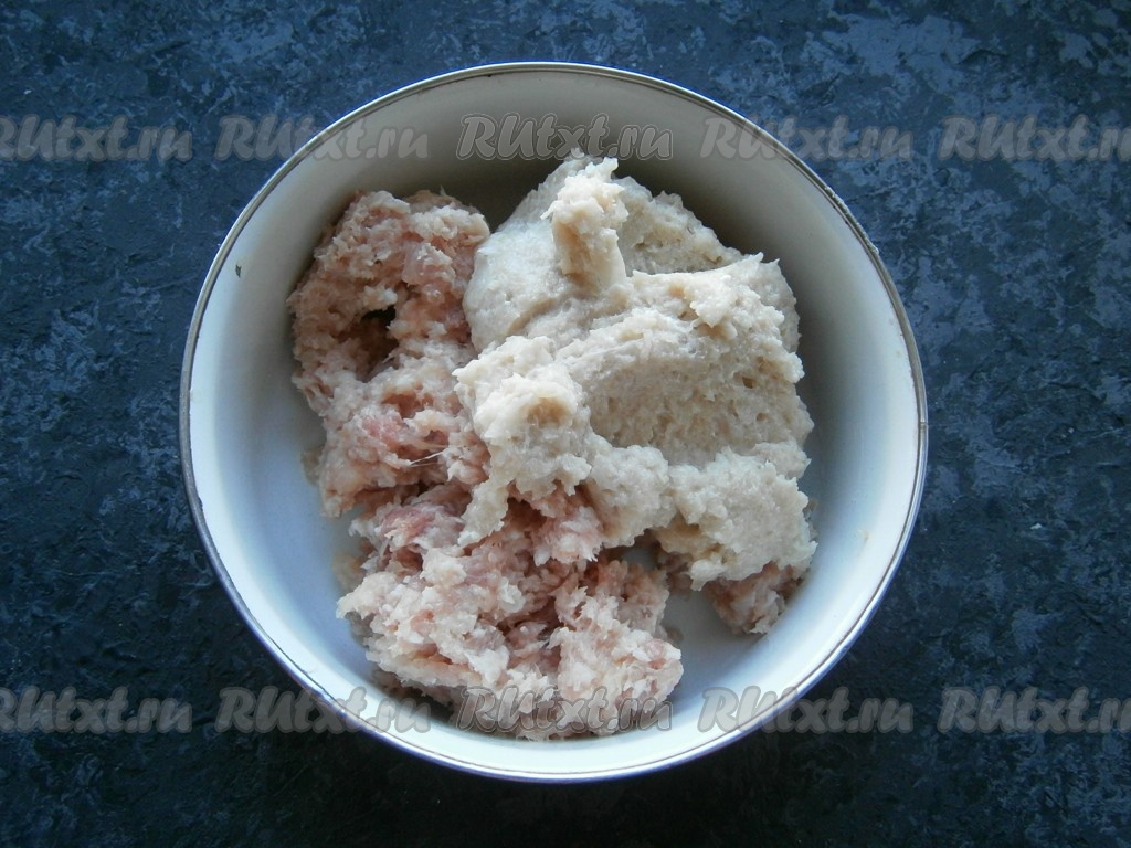 На мясорубке с крупной решеткой перекрутить мясо, сало (или жир) и очищенный репчатый лук.