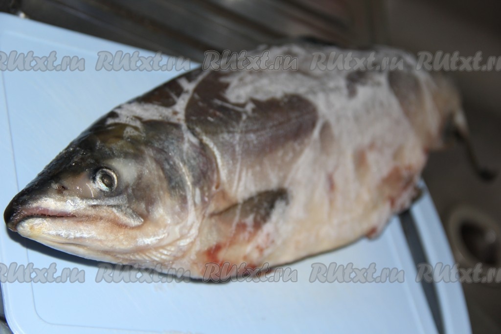 Я использую замороженную потрошёную горбушу. Предварительно оставляю рыбу при комнатной температуре на 1 час, за это время она ещё не полностью разморозится.