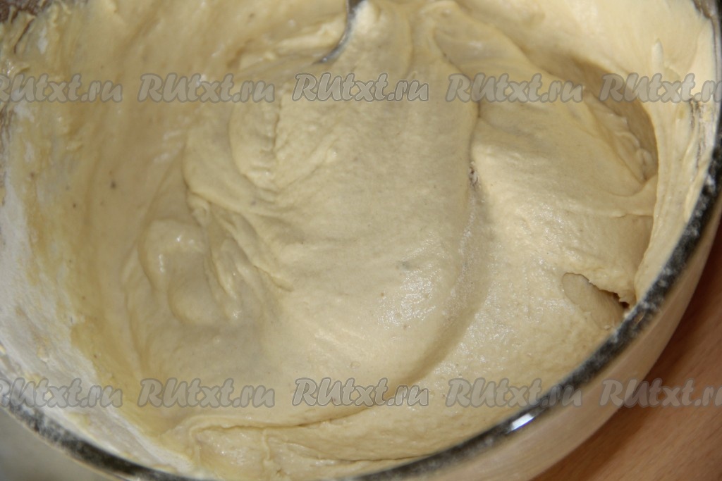 В получившуюся масляную массу по одному добавить яйца, постоянно взбивая до однородного состояния.