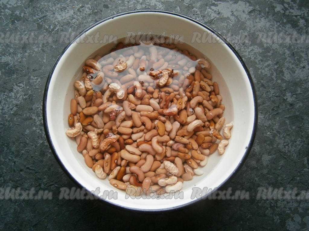 За это время фасоль хорошо разбухнет. Воду слить.