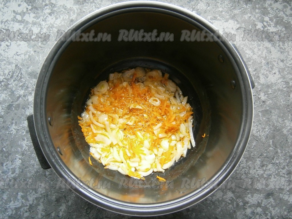 На 10 минут выставить программу "Жарка" и обжаривать овощи, помешивая, до сигнала.