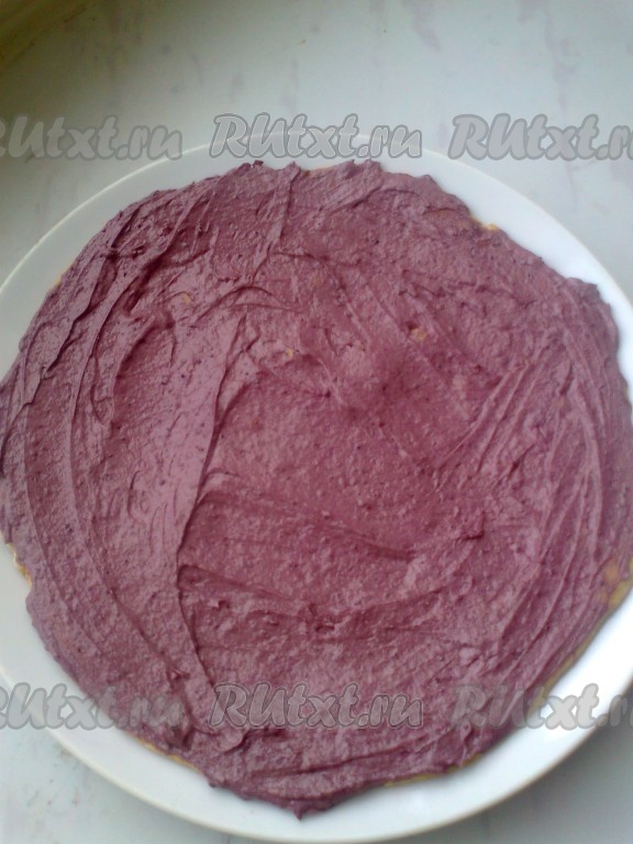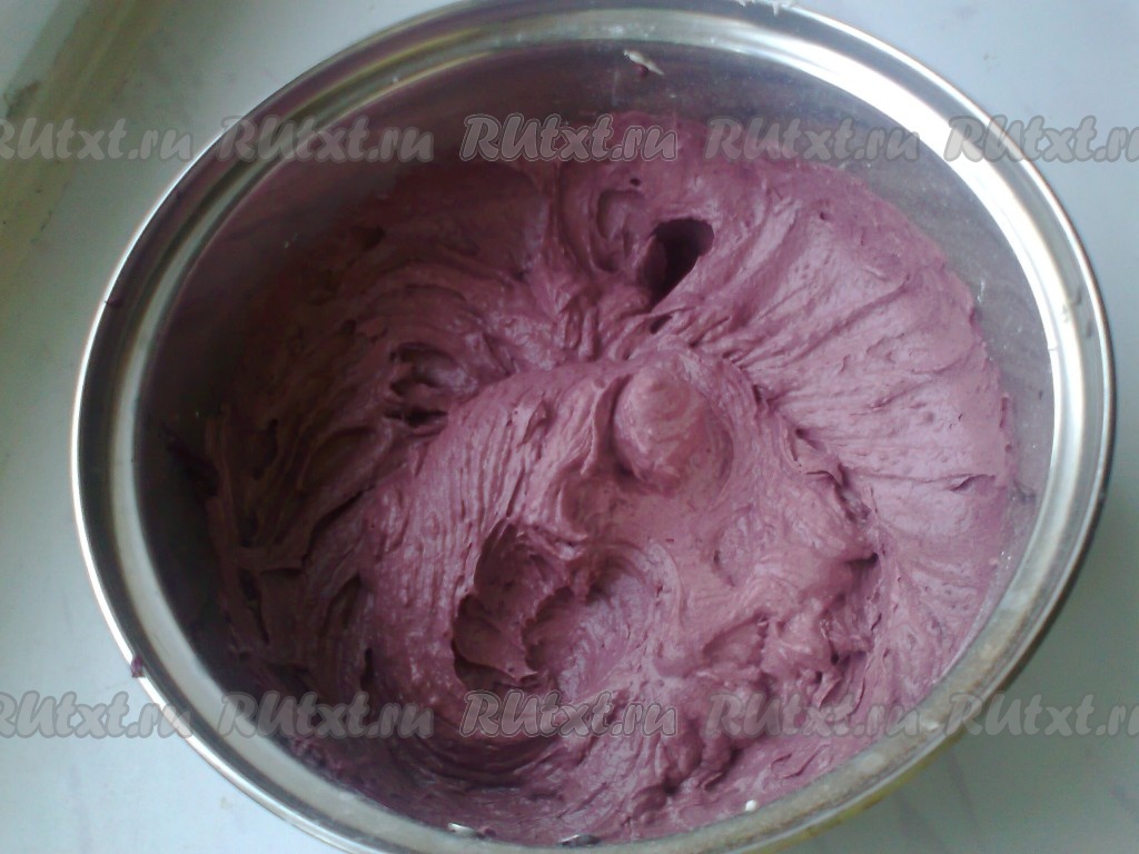 Во взбитое масло добавлять частями черничный крем, взбивая все вместе миксером.