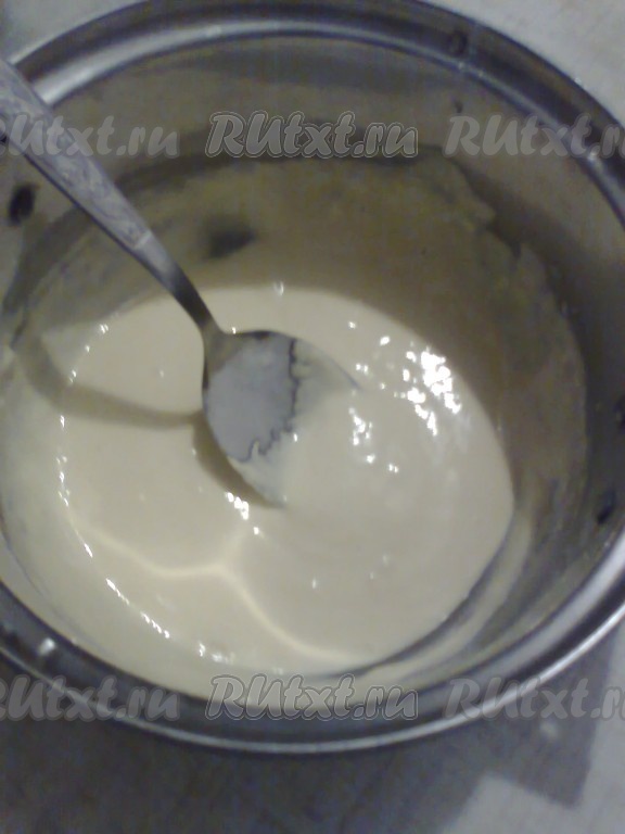 В отдельной кастрюле соединить яичные желтки, муку и 100 мл сливок, взбить миксером. Вместо сливок я использовала сметану хорошего качества.