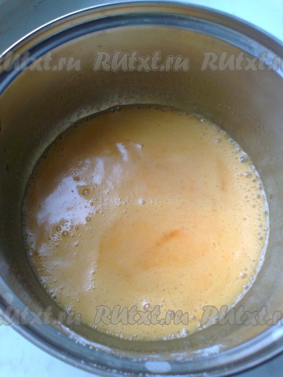 Готовим тесто для коржей. Для этого надо взбить миксером яйца с сахаром до побеления массы и растворения сахара (взбивать в течение 3-5 минут).