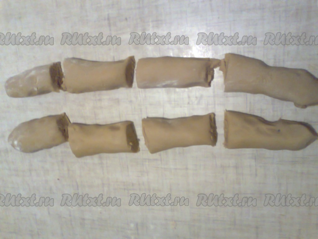 На столе, припорошенном мукой, каждый кусочек теста раскатать в тонкий пласт толщиной около 3-5 мм. Тесто получается мягким, податливым. Можно делать квадратный или же круглый торт. Диаметр готовых круглых коржей 20 см. Для выпекания вырезаем коржи большего размера, например, диаметром 21 см, чтобы потом их обрезать.