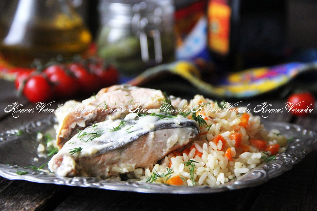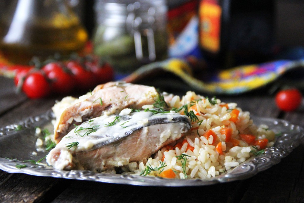 Приготовить это блюдо в мультиварке совсем несложно. Горбуша получается сочной, вкусной, она отлично сочетается с рассыпчатым рисом. Перед подачей блюдо можно посыпать рубленной зеленью.