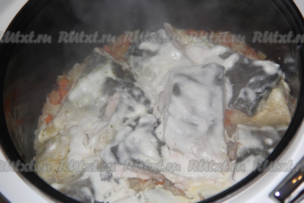 Закрыть крышку мультиварки, выставить режим "Плов" и готовить до сигнала (в моей мультиварке этот режим составляет 30 минут).
