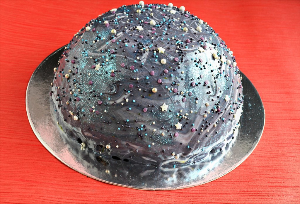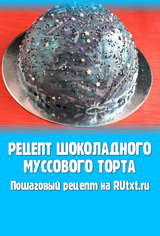 Хочу предложить вам рецепт шоколадного муссового торта, который я покрыла готовой зеркальной глазурью, а сам торт был оформлен в виде полушара в космическом стиле. Вы можете приготовить торт любой формы и покрыть его, например, простой или зеркальной шоколадной глазурью (или любым кремом). Торт получился необыкновенным: очень вкусным, нежным, похожим на шоколадный пломбир. Вес готового торта около 1,2-1,3 килограмма.