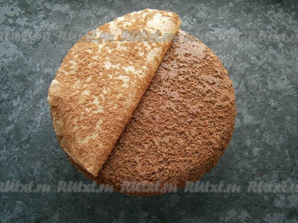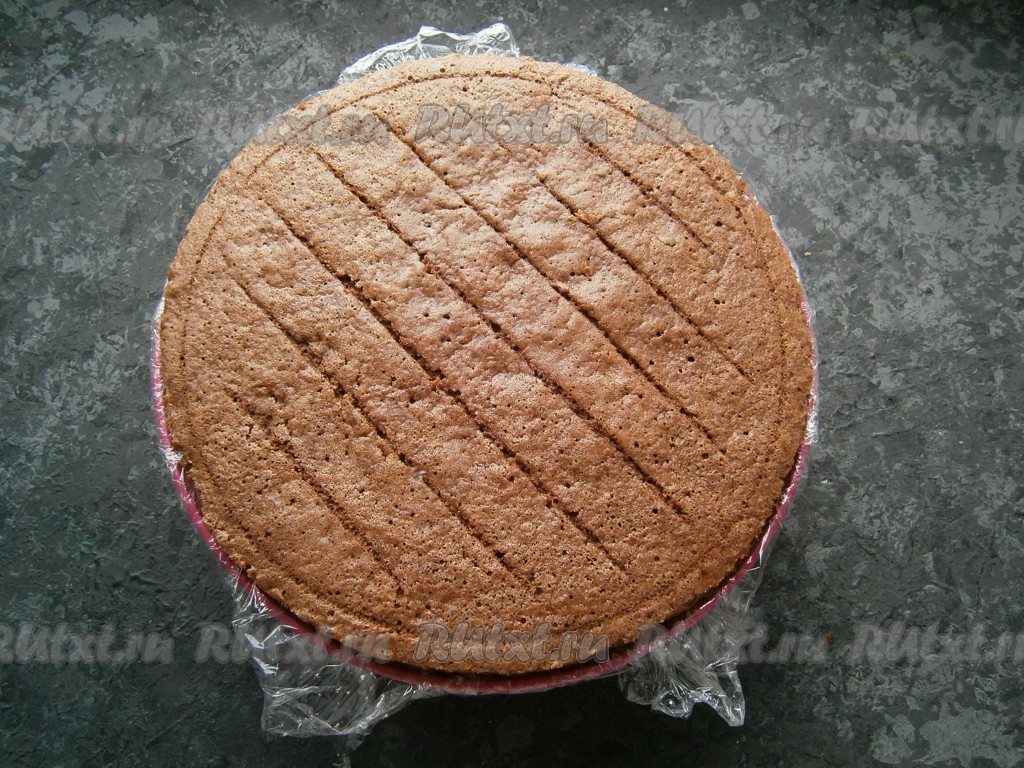 Сверху, чуть вдавливая, разместить остывший бисквит.