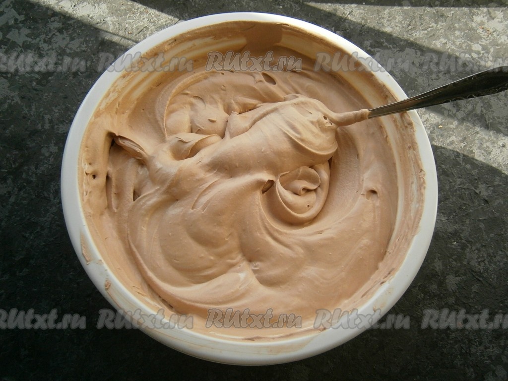 Взбить кондитерский крем миксером до пышности и устойчивых пиков. Делается это недолго - минуты 3-4.