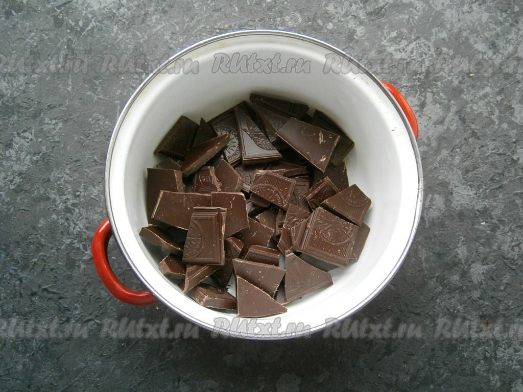 Шоколад поломать на кусочки.