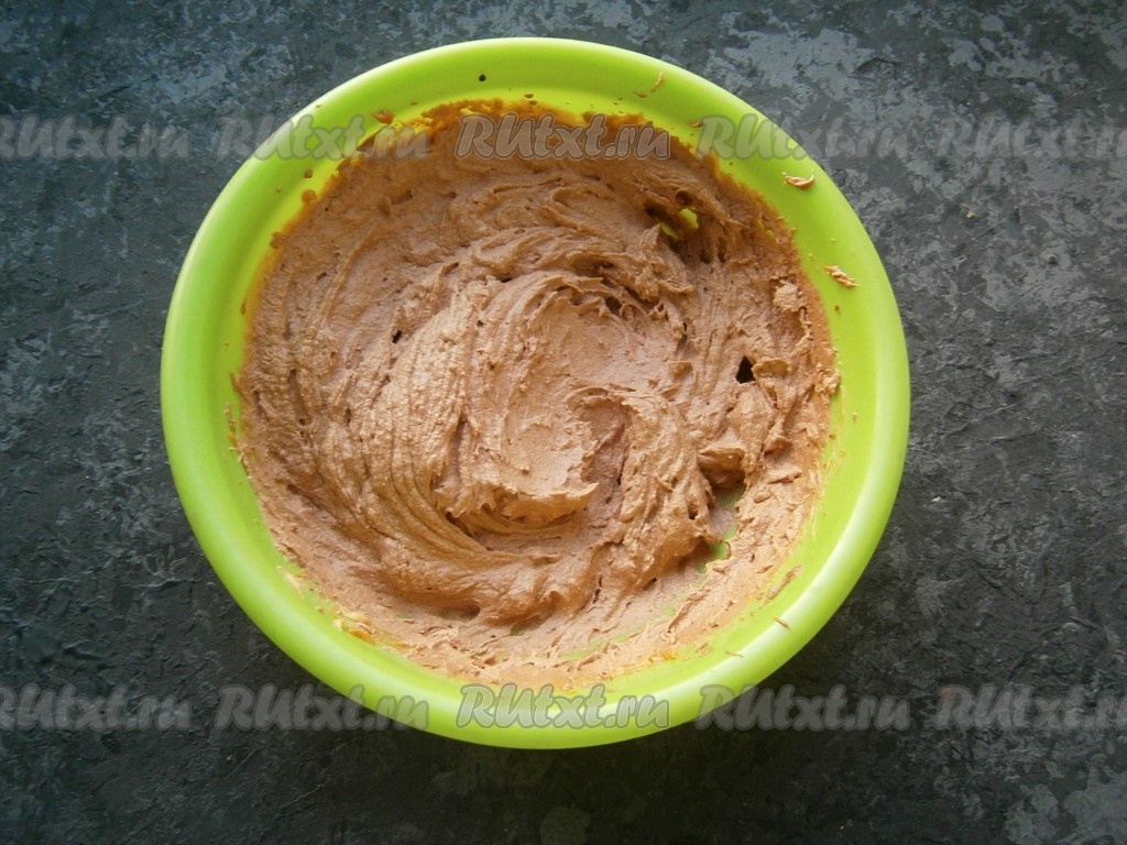 Влить немного коньяка и еще раз взбить шоколадный крем миксером до однородного состояния.