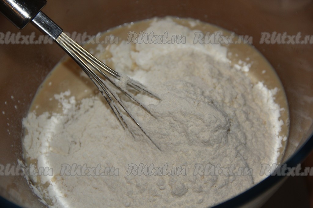 Всыпать муку и ванилин.