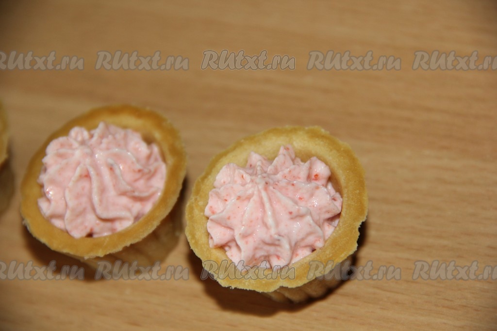 Отсадить крем в мини тарталетки.