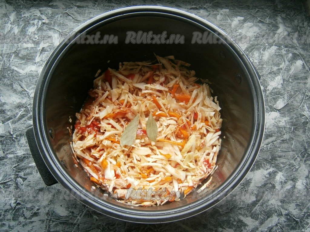 Хорошо перемешать, добавить лавровые листья.