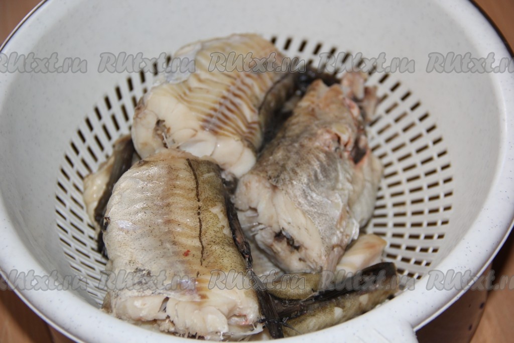 Отваренную рыбу откинуть на дуршлаг и дать остыть.