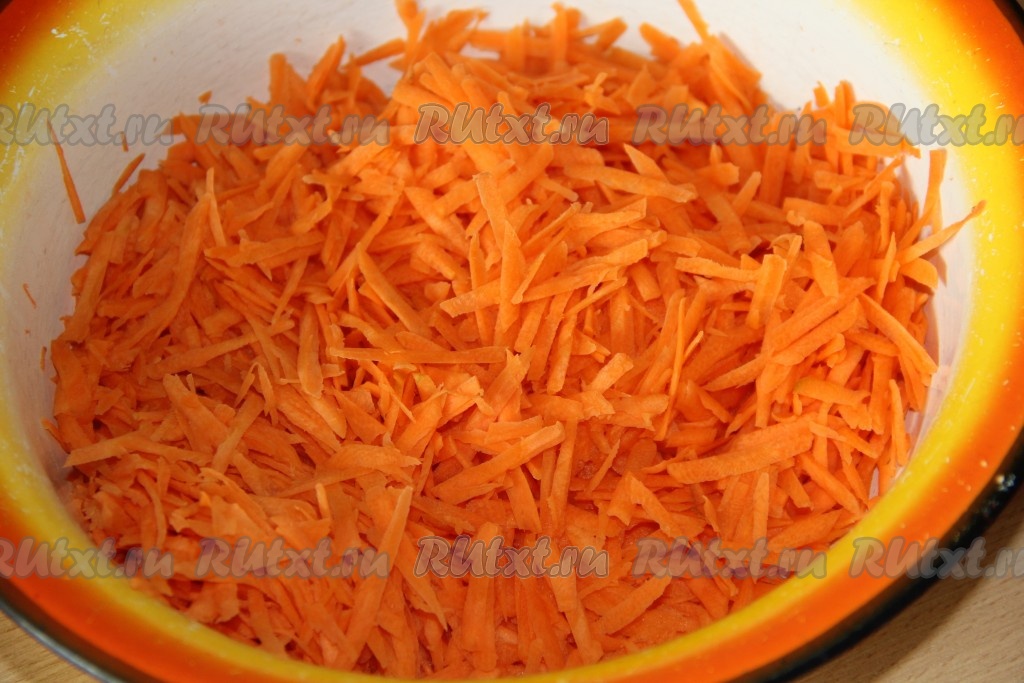 Морковь очистить, а затем натереть на крупной тёрке.