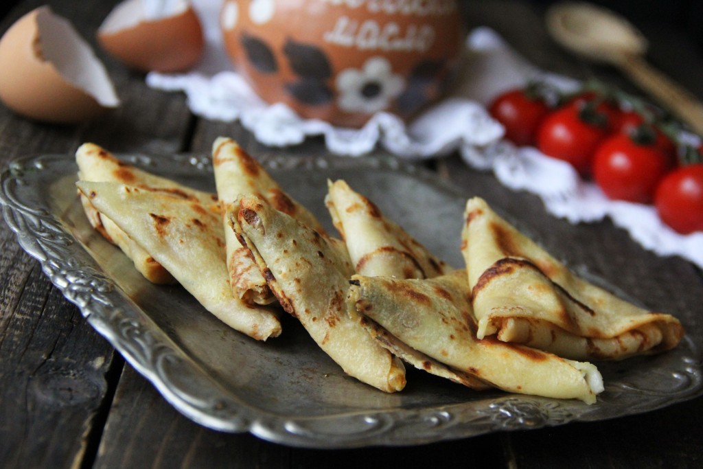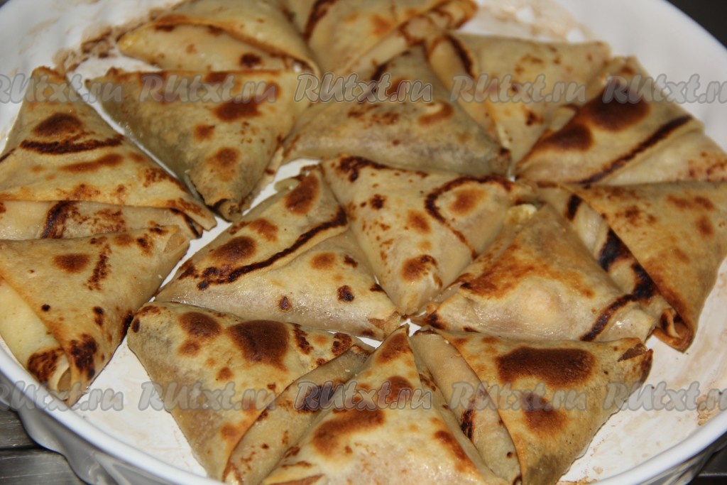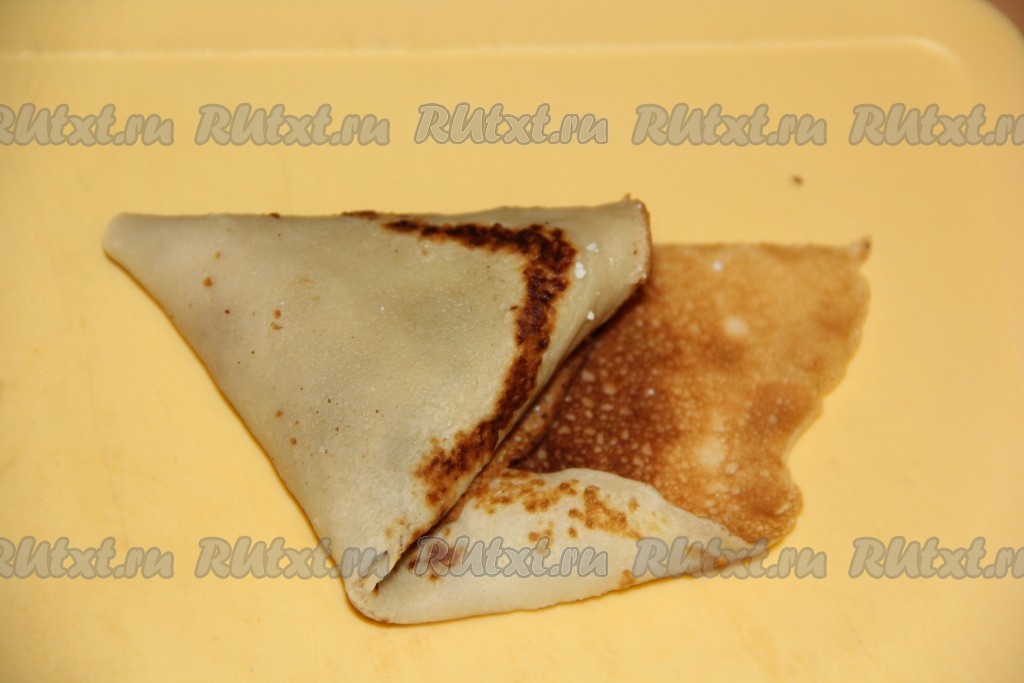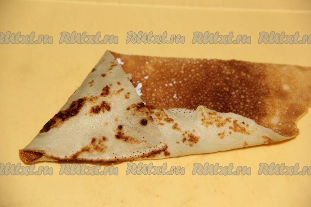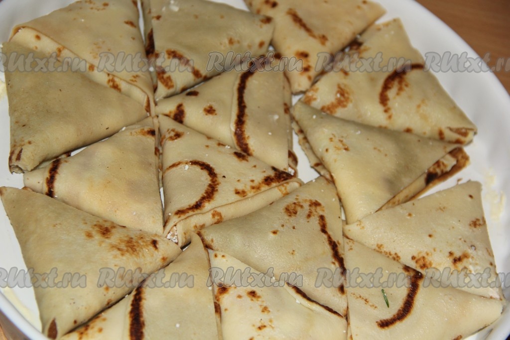 И получившийся треугольник заворачивать дальше по блинной полоске.