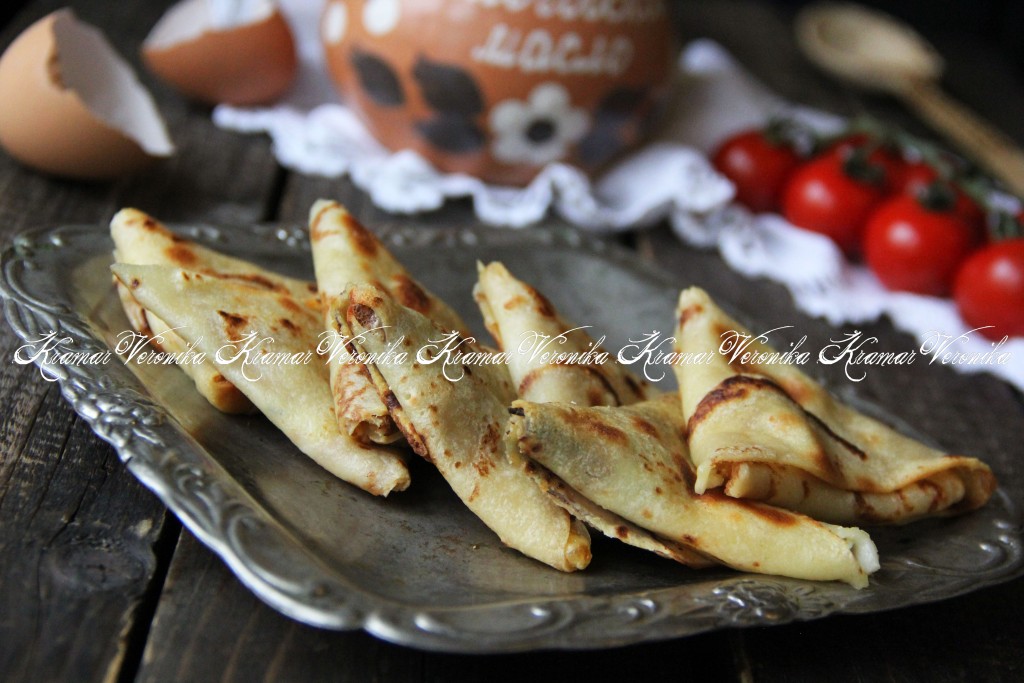 Накрыть начинку одной стороной и нижним краем блина (как на фото).