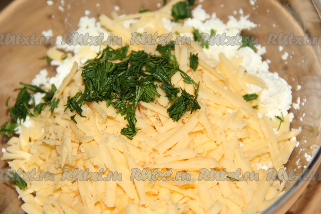Хорошо перемешать сырно-творожную начинку.