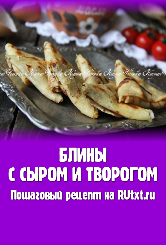 Вот такие аппетитные и очень вкусные блины с творогом и сыром получились.