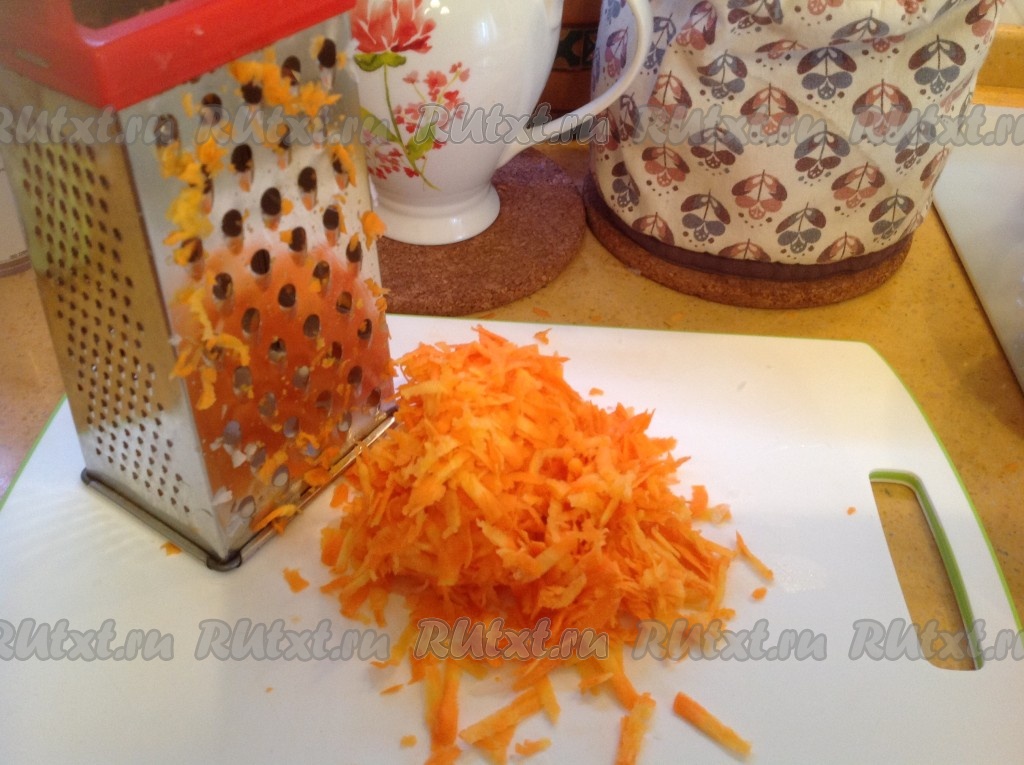 Моем и чистим дайкон, морковь и яблоко. Затем натираем их на крупной тёрке.