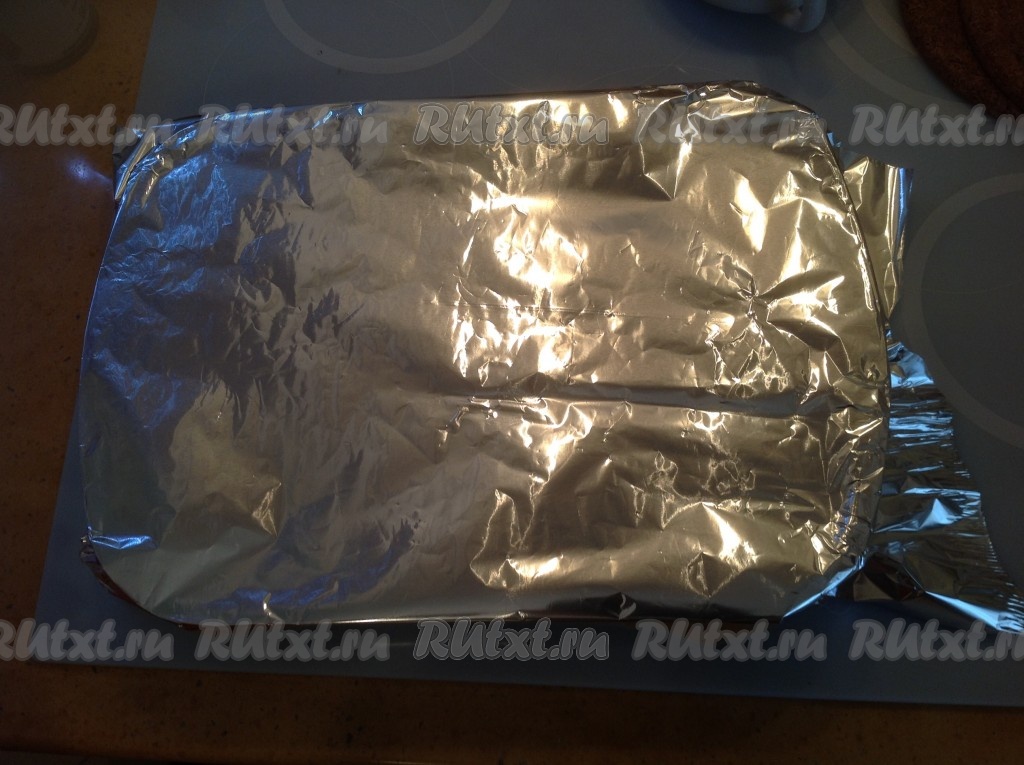 Складываем ребрышки на противень, закрываем фольгой и оставляем мариноваться на 2 часа.