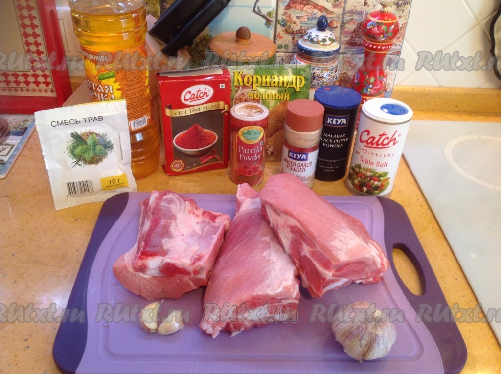 Подготовим необходимые продукты. Свиные рёбрышки моем и обсушиваем бумажным полотенцем.