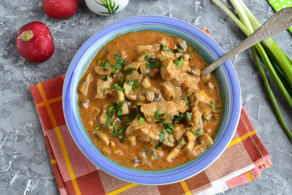 Гуляш - это наивкуснейшее блюдо, рецептов которого существует немало. Готовят гуляш из мяса, курицы, грибов, овощей. Я предлагаю попробовать гуляш из свинины с грибами. В процессе его приготовления образуется наивкуснейшая подливка, которая дополнит любой гарнир (например, картофельное пюре, каши или макароны). Попробуйте это простое блюдо и насладитесь его отличным вкусом!