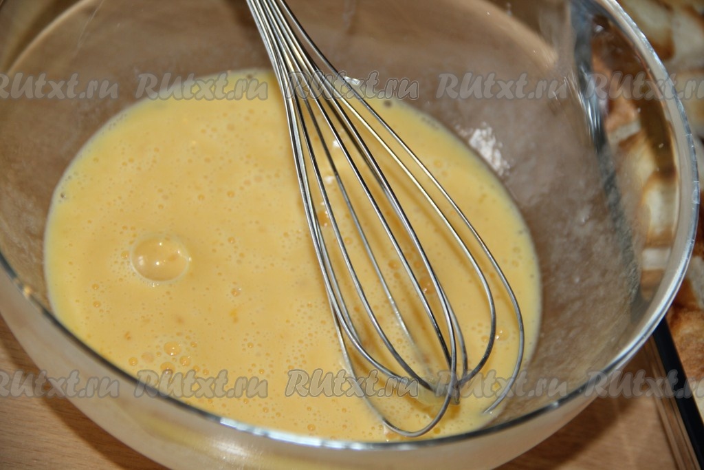 Кусочки батона залить яично-молочной смесью.