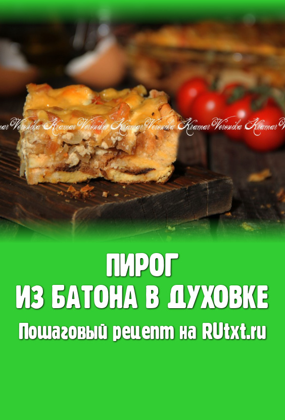 Запекать пирог из батона в разогретой духовке, примерно, 25-30 минут при температуре 200 градусов.