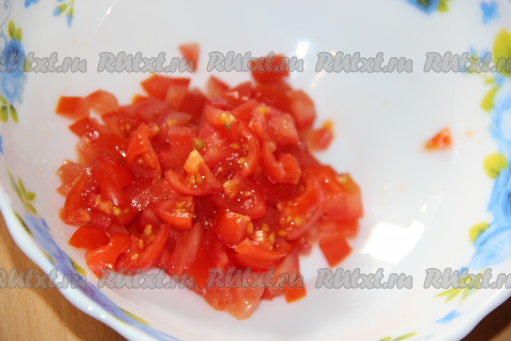 Для приготовления начинки вымыть и мелко нарезать 1 помидор.