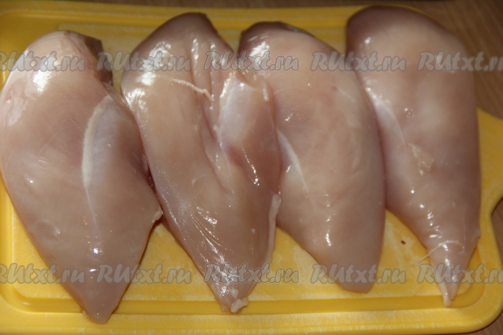 Куриные грудки промыть и обсушить бумажным полотенцем.
