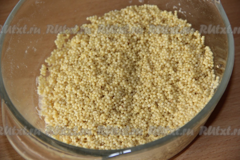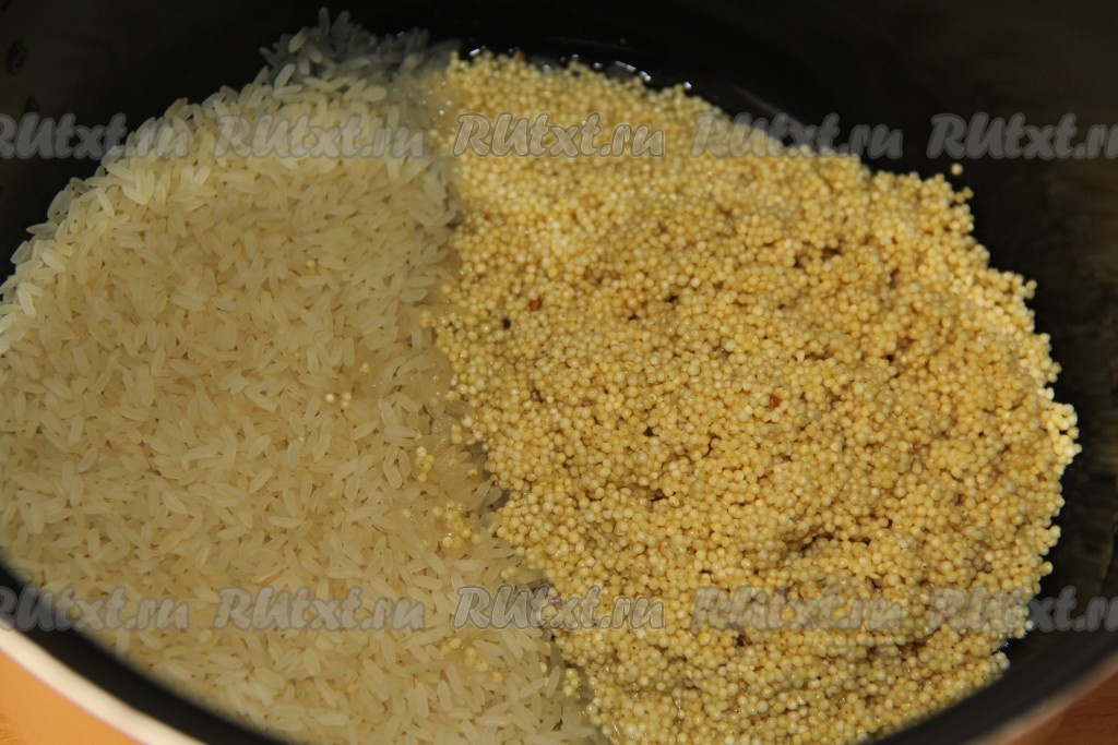 Пшено хорошо промыть под проточной водой. Если используете круглый рис, то тоже промойте холодной водой. Я использовала длиннозернистый рис.