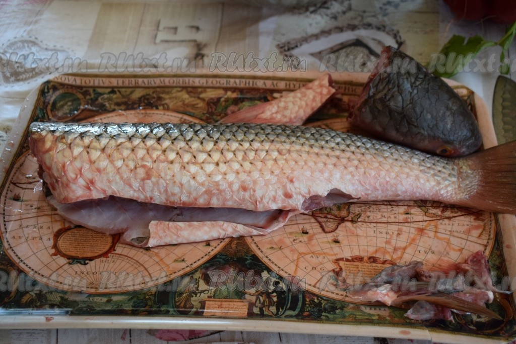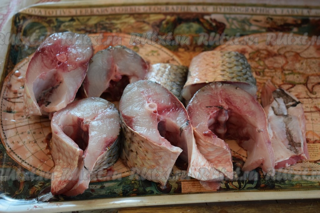 Далее нарезаем рыбу на порционные кусочки (на такие, какие вы любите). Я нарезаю, примерно, по 3-4 см в ширину.