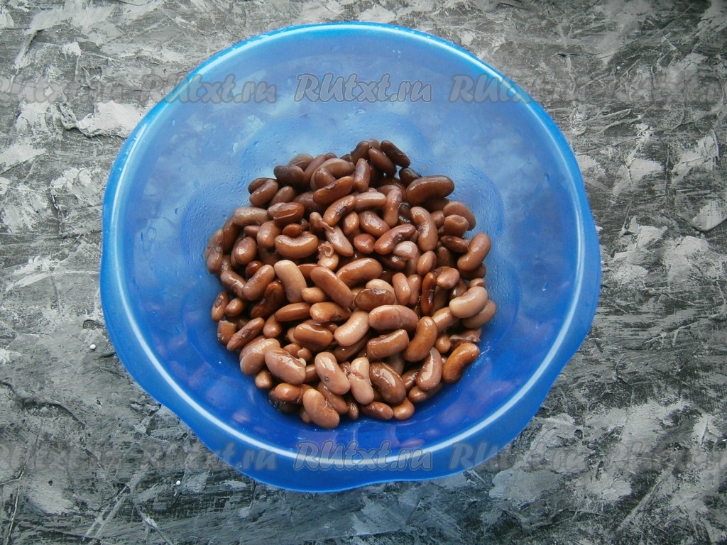 Открыть банку с фасолью, промыть консервированную фасоль под проточной водой.
