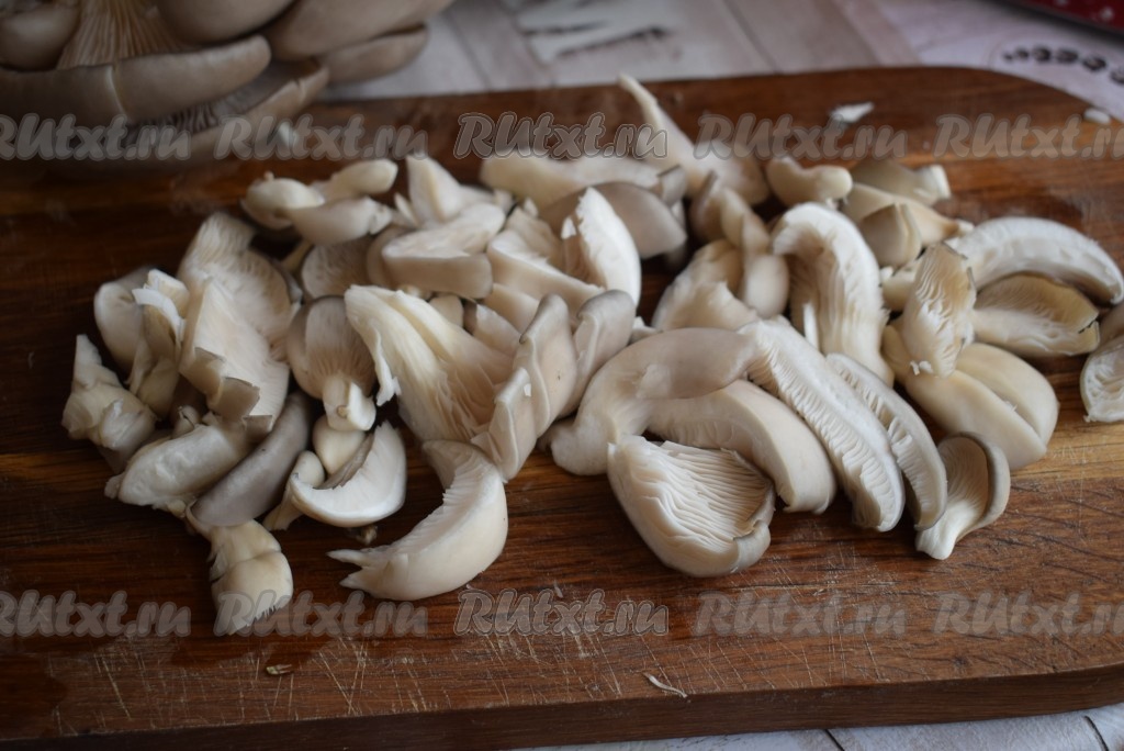 Вешенки промоем холодной водой, обсушим и нарежем на полоски.
