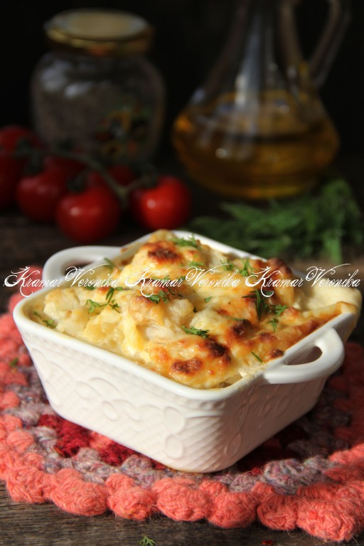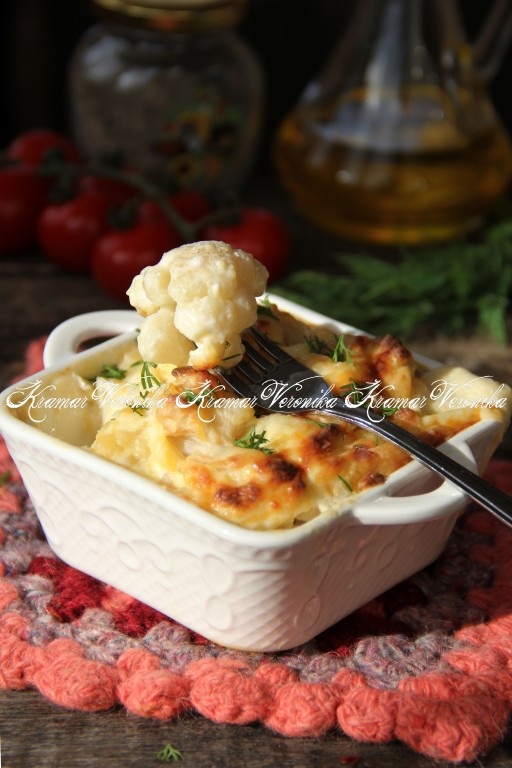 Запекать цветную капусту в сырном соусе в разогретой духовке минут 30-40 при температуре 180 градусов (соцветия капусты должны стать мягкими, они будут легко прокалываться ножом). Цветная капуста покроется аппетитной золотистой корочкой. Подавать это наивкуснейшее блюдо лучше в горячем виде.