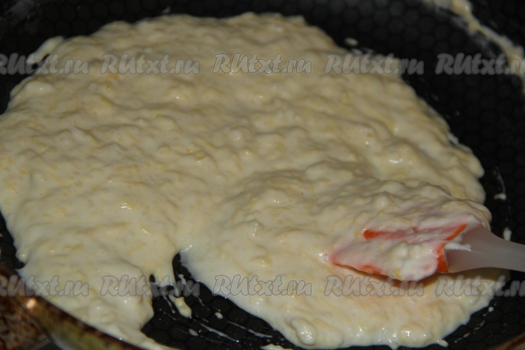 Должна получиться однородная масса. На мелкой тёрке натереть сыр. Частями добавить сыр в сковороду, перемешивая получившийся соус.