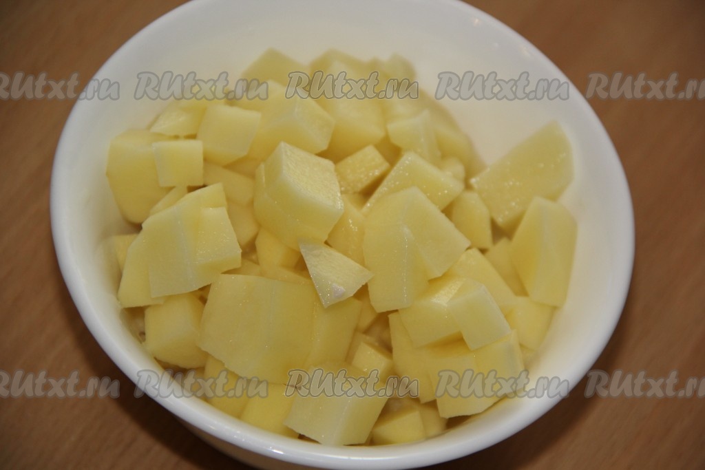 Картошку, морковь и лук очистить. Клубни картофеля нарезать на кубики.