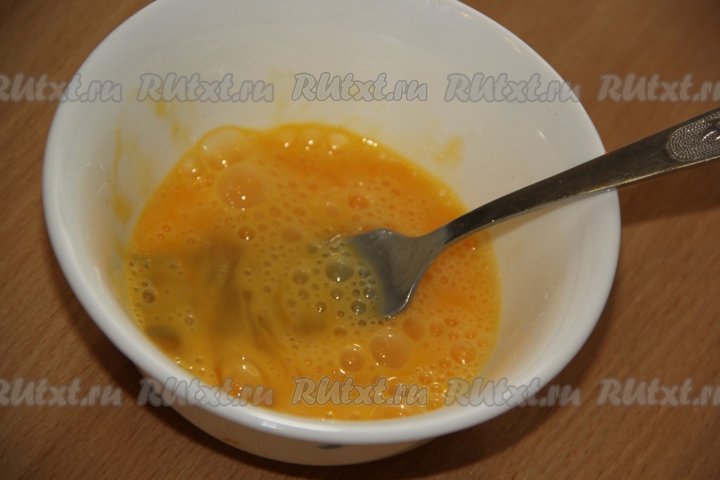 Яйцо вбить в пиалу (или миску) и взбить вилкой.
