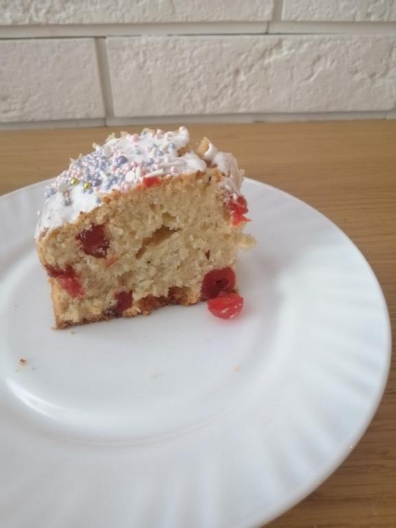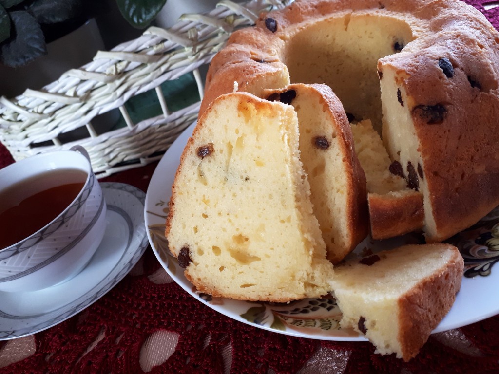 Вот такой красивый, высокий творожный кекс с изюмом получился!